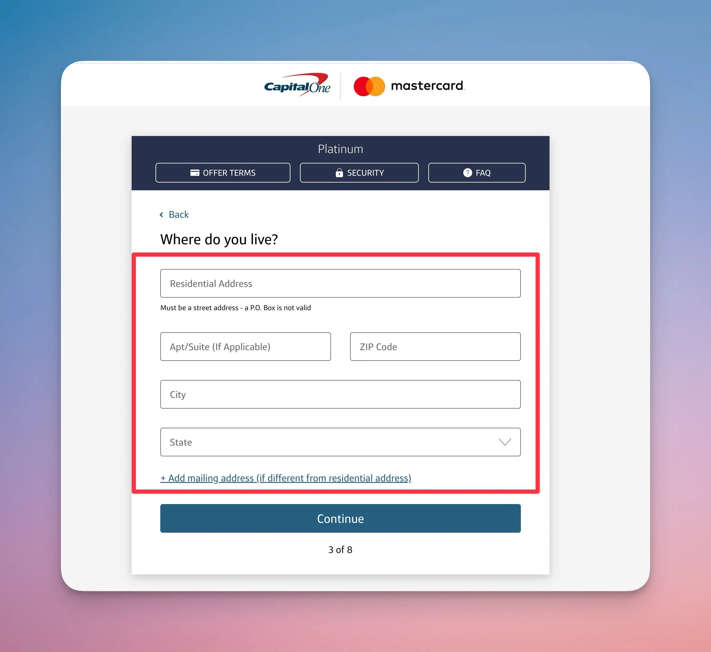很多小伙伴申请的是Capital One信用卡,其实就是在预审批这一步始终通不过,那我们可以不使用预审批功能,直接申请信用卡试试。我自己的实际测试是,很多地址在预审批这里不通过,但是在实际申请中,是可以通过的。