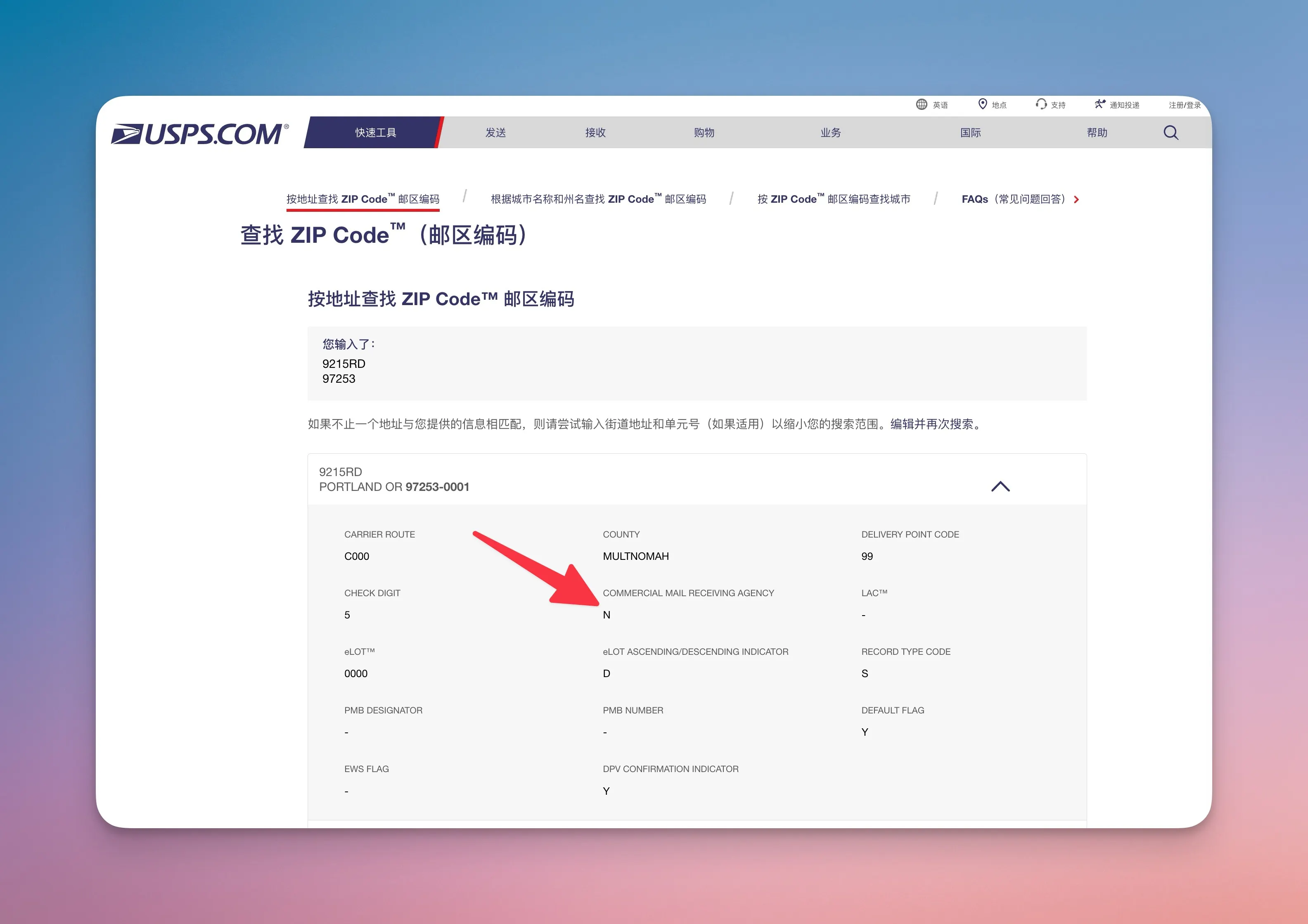 所以我们的申请美国地址的时候,第一步就是要到这个页面,来查询是否为商业地址。