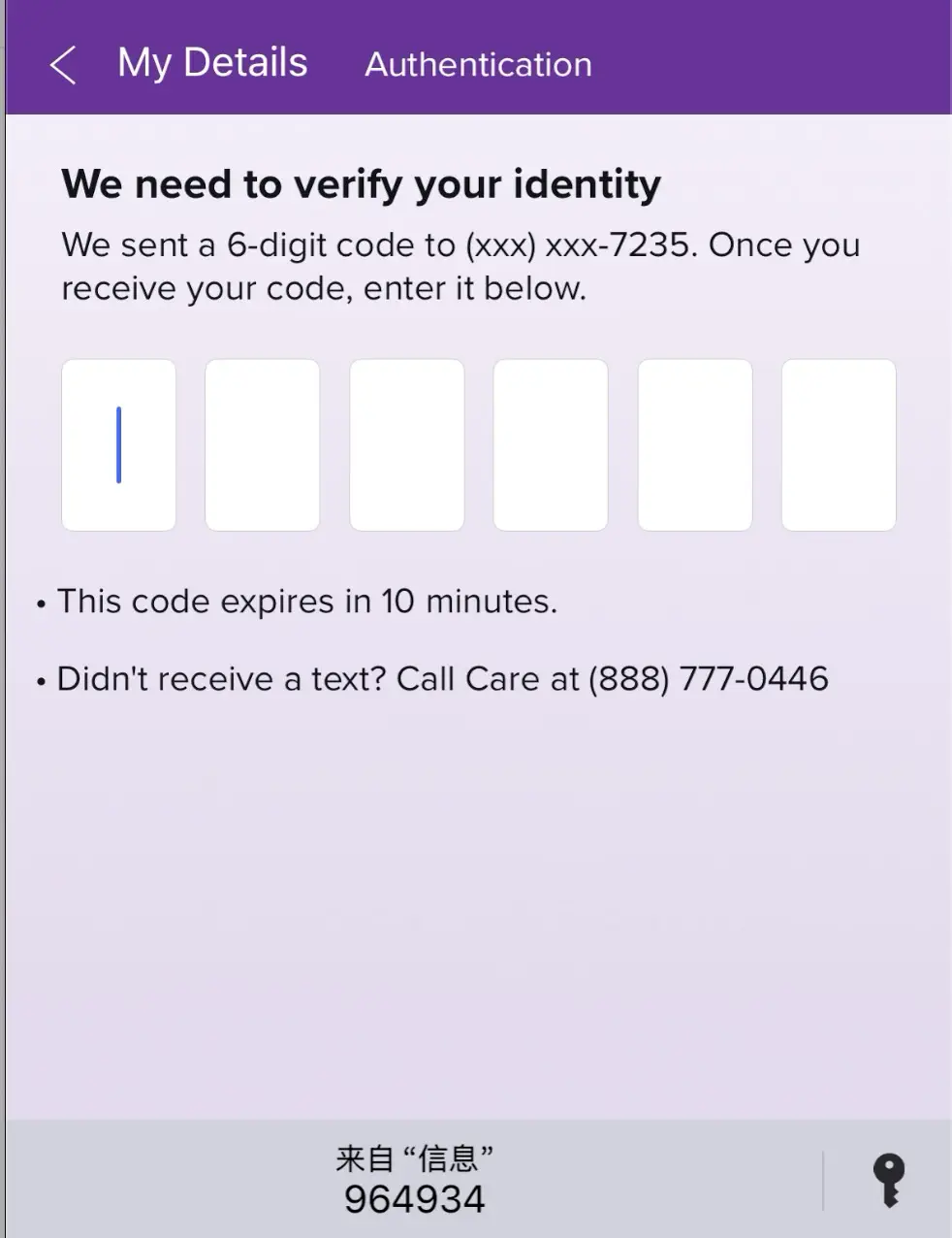 输入短信验证码,确认是本人操作。