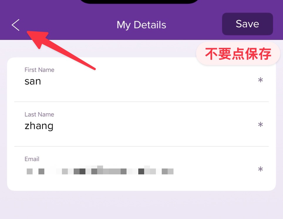 接下来系统会跳转到这个页面,需要注意的是,这个时候我们需要点击左边的返回箭头,千万不要点击保存,不然又会跳转到接受验证码的步骤,无限循环。