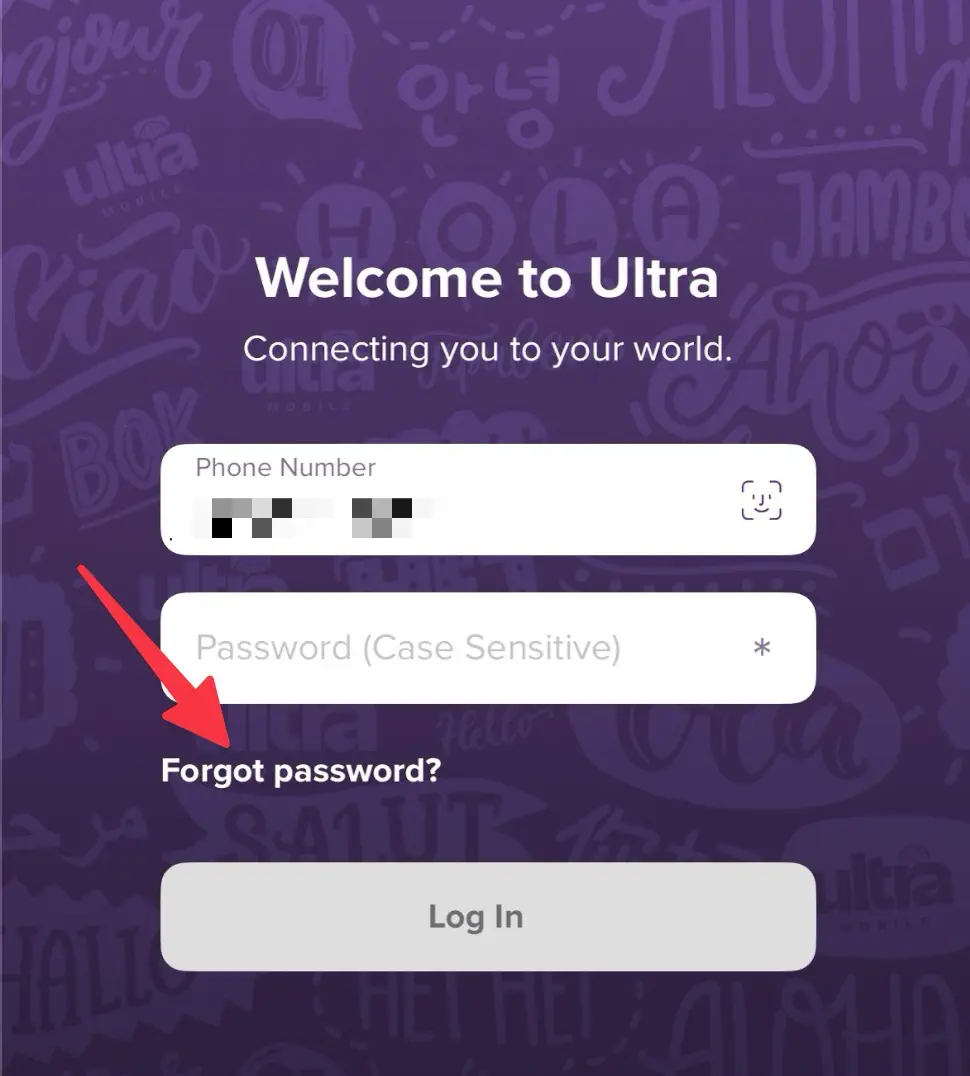 接下来我们下载Ultra Mobile手机APP,打开APP,点击首页的忘记密码。